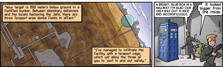 PETEY: *in narration* "Your teraport cage works fine as long as the enemy doesn't know it's there. It can mask a few 'ports, but only a few, which is why we can't send more than three of you down."