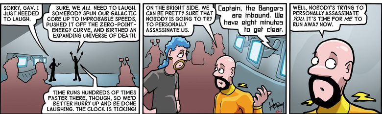 GAVCLONE 1: Sure, we all need to laugh. Somebody spun our galactic core up to improbable speeds, pushed it off the zero-point-energy curve, and birthed an expanding universe of death.