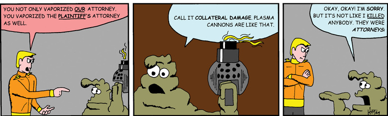 Schlock: Call it collateral damage. Plasma cannons are like that.