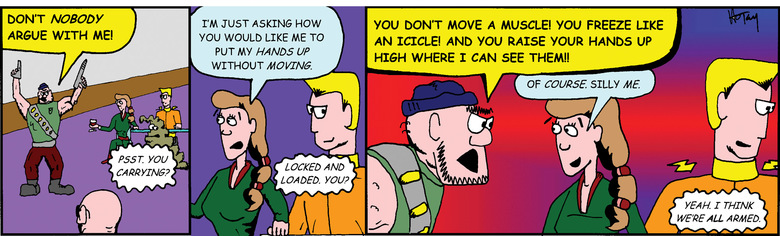Tagon: Er, ummm. . . whereas I'm a man, and I'm expected to be brave -- because bravery is a man thing -- you are a woman, and you are, ummmm. . . Oops?