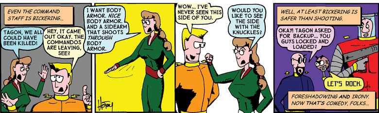 Brad: Schlock, where have you been? We were supposed to be repelling boarders!