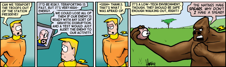 Elf: Lucky me. I think my power plant in my uniform shorted out in the blast. I had to stow my helmet and gloves by hand.
