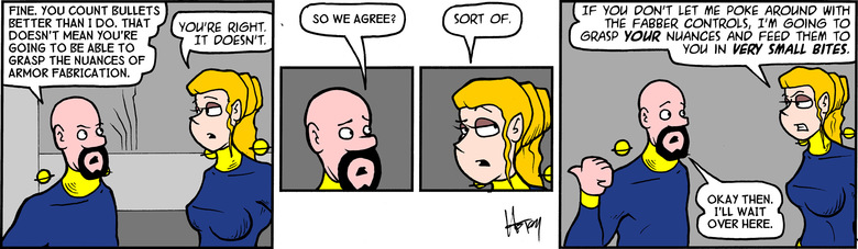 Kevyn: Fine, you count bullets better than I do. That doesn't mean you're going to be able to grasp the nuances of armor fabrication.