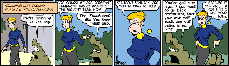 Schlock: We're going up to the ship.