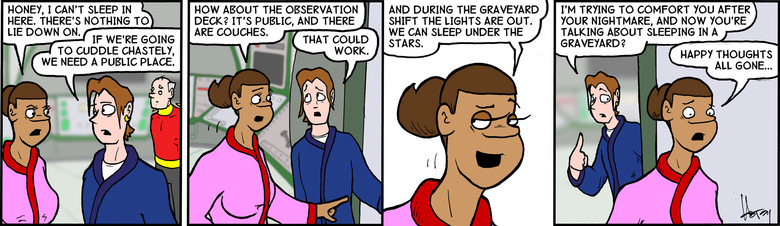 Narrator: The lovers sit entwined, yet chaste. Awaiting sleeps' return. But passions rise with awkward haste and lust begins to burn.