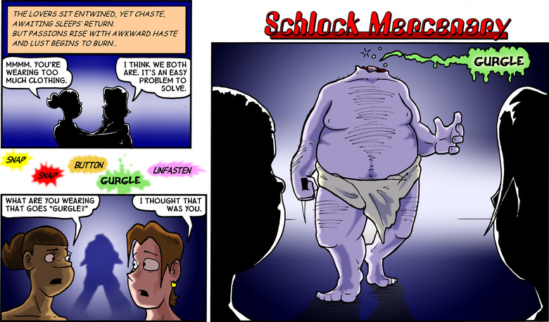 SFX: Snap. Snap. Button. GURGLE. Unfasten.