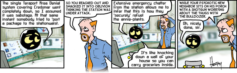Massey: I just had a thought. Stay with me on this: If their standard procedure for fueling the station involves taking the entire teraport defense system down. . .