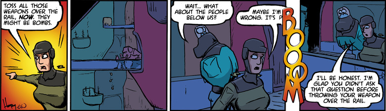 MURTAUGH: Toss all those weapons over the rail, now.  They might be bombs.
