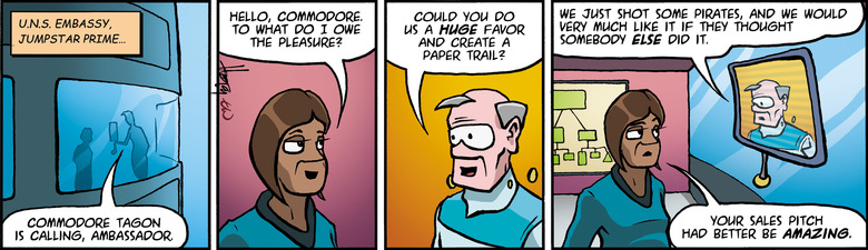 SORLIE: Commodore Tagon is calling, Ambassador.