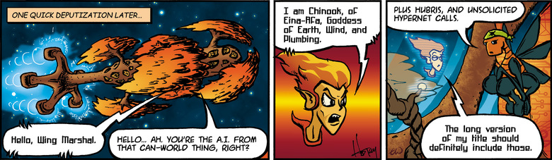CHINOOK: I am Chinook, of Eina-Afa, Goddess of Earth, Wind, and Plumbing.