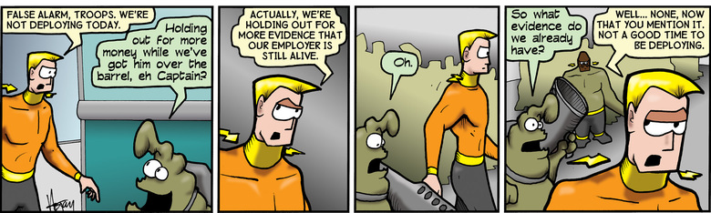 Schlock: Hey, we don't need an employer. We're here, the mob is down there, and we're already dressed for dancing.