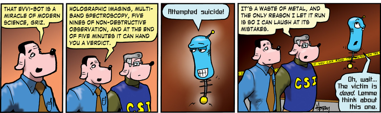 Evvi-bot: Oh, wait. . . The victim is dead. Lemme think about this one.