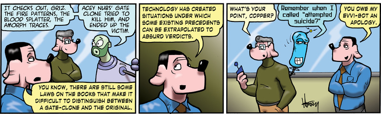 Ozvegan Copper: He granted power-of-attorney to an A.I. which then shunted all of his wealth through a series of launderings. We lost the trail, and ... Why are you rooting through the dumpster.