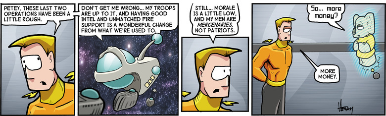 Captain Tagon: Still. . . morale is a little low, and my men are mercenaries, not patriots.