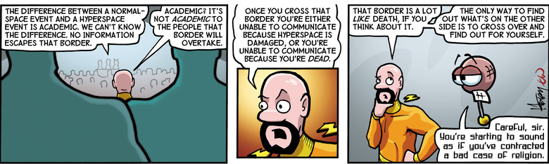 Kevyn: Let's assume that the border is destructive, and that the galactic core and gravitic fabric underpinning our home has been damaged. The "accident or malice" question becomes a very important one.