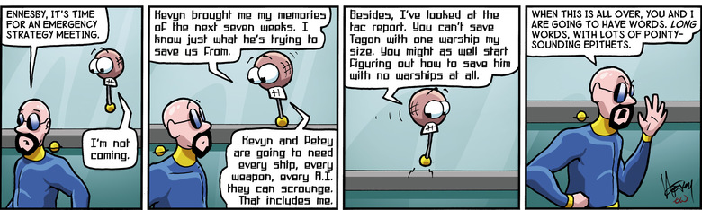 KEVYN: Well... he's got our ship. That's ninety-nine percent of our firepower currently unavailable for the rescue mission I'm supposed to plan.