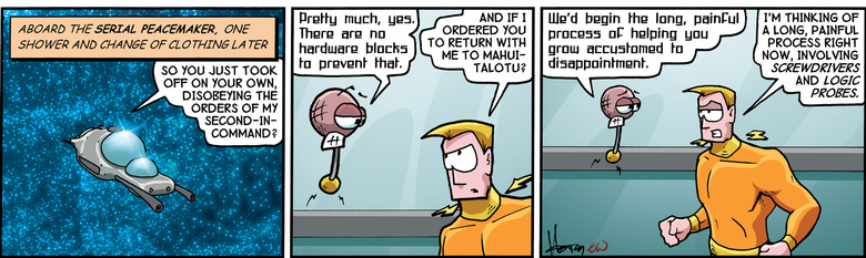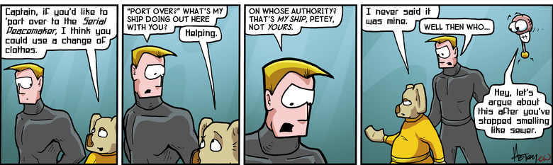 Petey: Captain, if you'd like to 'port over to the Serial Peacemaker, I think you could use a change of clothes.