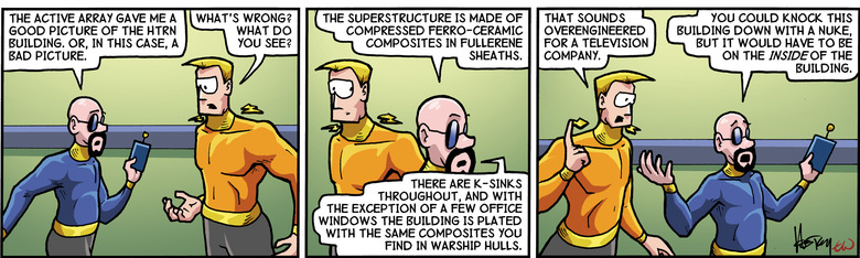 The trick, of course, is aligning the K-sinks such that impacts from enemy attacks make the air conditioning work a little harder rather than knocking the building down. This task would be made very much easier if architects knew exactly where and when the enemy attacks would be coming from. Of course, if they knew that they'd end up as very successful generals rather than architects.