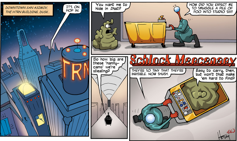 Schlock: So how big are these 'nanny-cams' we're stealing?