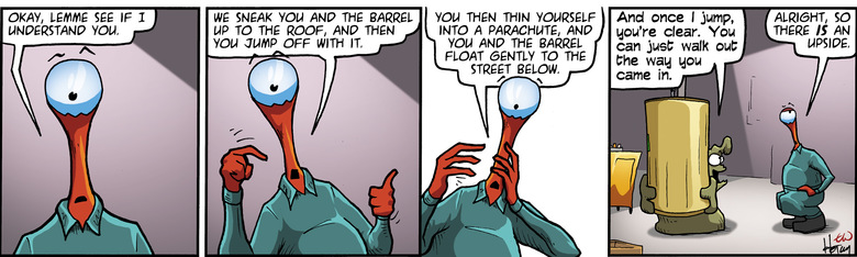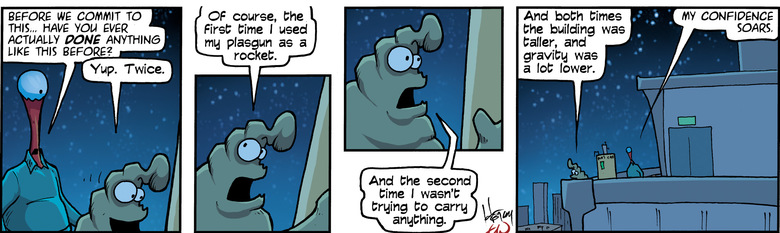 Schlock: Of course, the first time I used my plasgun as a rocket.