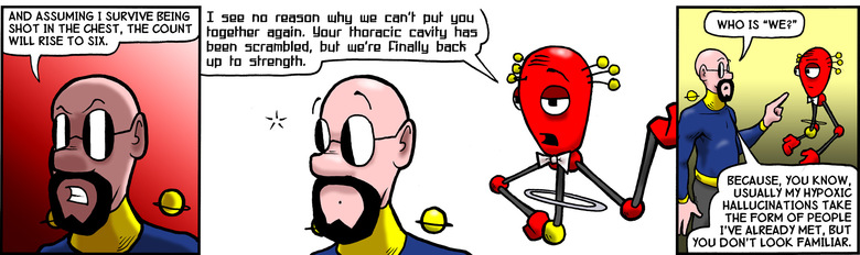 Kevyn: And assuming I survive being shot in the chest, the count will rise to six.