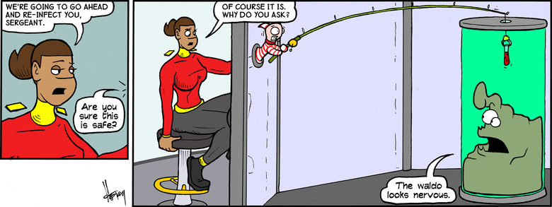 Doctor Bunnigus: Scans for those traces are coming up negative on you, Sergeant. How do you feel?