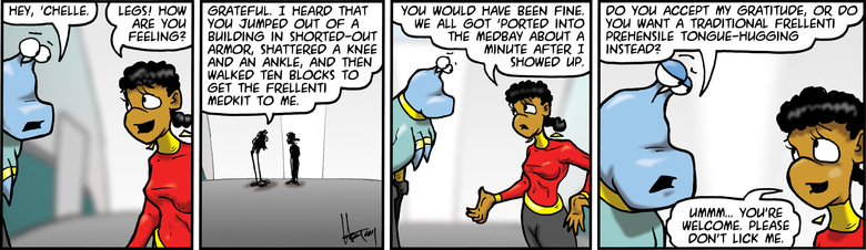 Legs: Do you accept my gratitude, or do you want a traditional Frellenti prehensile tongue-hugging instead?
