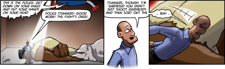 SCHLOCK: My plasguns are gone. Do you want me to post bail, or do I get to spring you with my bare hands?
