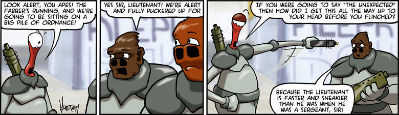 APE: Yes sir, Lieutenant! We're alert and fully puckered up for