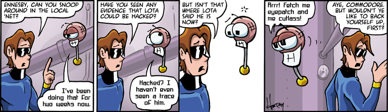 EBBIRNOTH: That reminds me... last time we were here, Ennesby said the Credomaran infosphere was like swiss cheese. Except infospheres aren't better with more holes.
