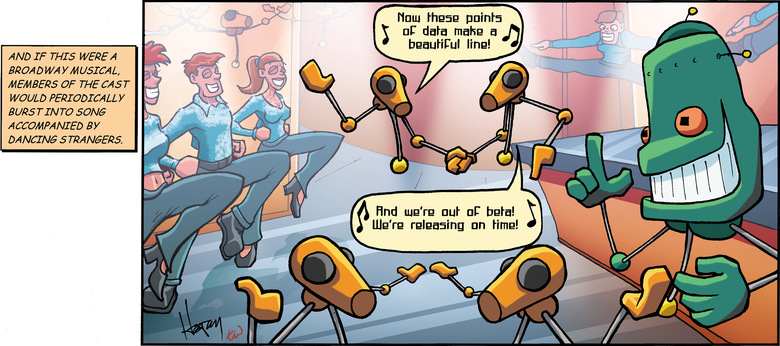 BOT 2: *singing* And we're out of beta! We're releasing on time!