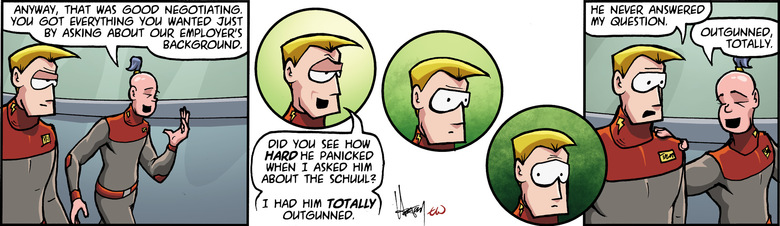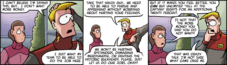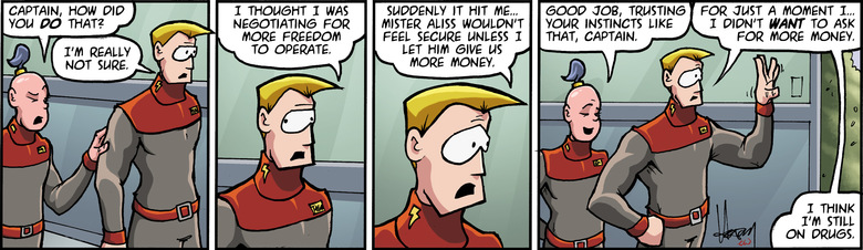CAPTAIN TAGON: Suddenly it hit me... Mister Aliss wouldn't feel secure unless I let him give us more money.