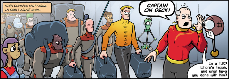 CAPTAIN TAGON: We could have saved a little time if he'd gotten his kiss from the bus driver.