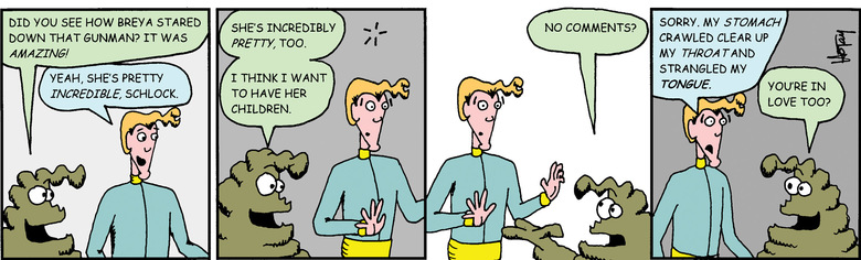 Breya: Oh, very good. I stared down an armed maniac with no weapons at all, whereas you men.. you men...