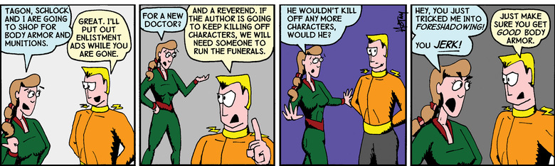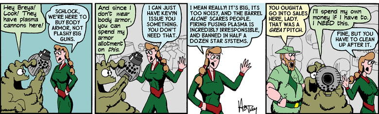 Schlock: Yeah, I need a new plasma cannon. My last one blew up on me.