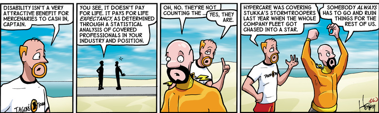 Factor in pressure from a hostile former employer who happens to be a planetary government, a substantial amount of greed among the senior officers, and some poorly timed lapses in communication, however, and the theoretically impossible becomes a statistical likelihood. Insurance companies thrive on statistics, and statistically speaking, anything that has happened once is bound to happen again.