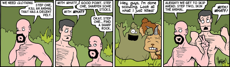 Kevyn: We need clothing. Step one, kill an animal that has a decent pelt.