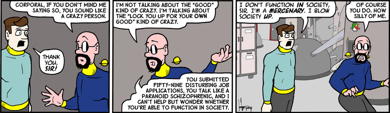 Kevyn: Captain, I interviewed Corporal Pibald, and he scares me to death.