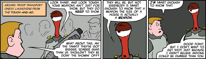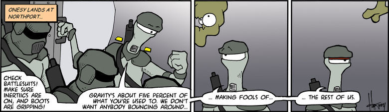 Narrator: The difference between gravity and centrifugal force is the subject of many a discussion among Credomites who love to argue that the the thing holding them all to the ground is actually an illusion.