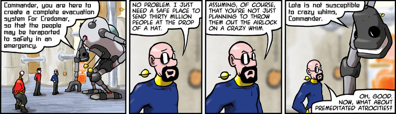 LOTA: Don't be absurd. There will be no personal devices. Any evacuation of Credomar will neccesarily be an evacuation of the entire city.