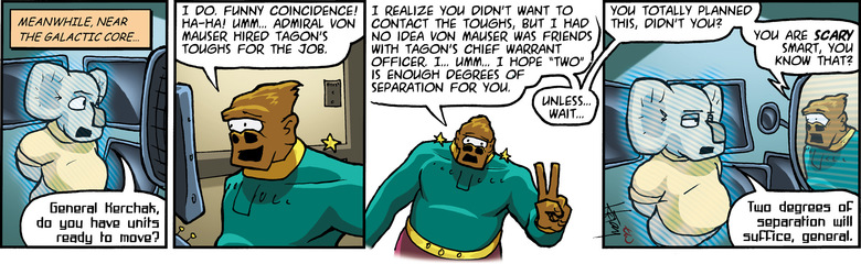 KERCHAK: I realize you didn't want to contact the Toughs, but I had no idea von Mauser was friends with Tagon's chief warrant officer. I... umm... I hope "two" is enough degrees of separation for you.