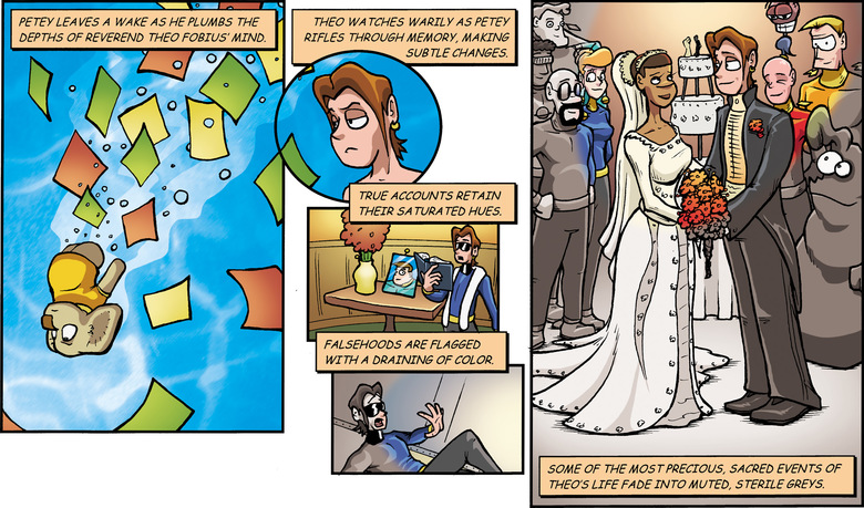 Theo watches warily as Petey rifles through memory, making subtle changes.