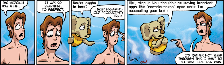 PETEY: Well, stop it. You shouldn't be leaving important apps like "consciousness" open while I'm recompiling your brain.