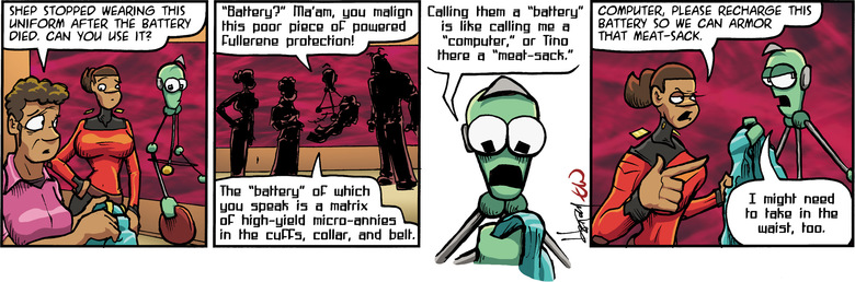 TAILOR: "Battery?" Ma'am, you malign this poor piece of fullerene protection!