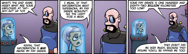 KEVYN: Your pay grade is one hundred and eighty-two billion kilometers too low?