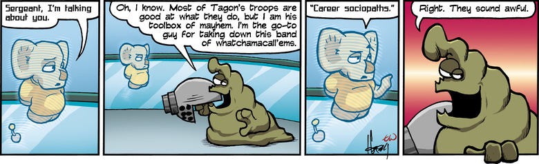 SCHLOCK: Oh, I know.  Most of Tagon's troops are good at what they do, but I am his toolbox of mayhem.  I'm the go-to guy for taking down this band of whatchamacall'ems.
