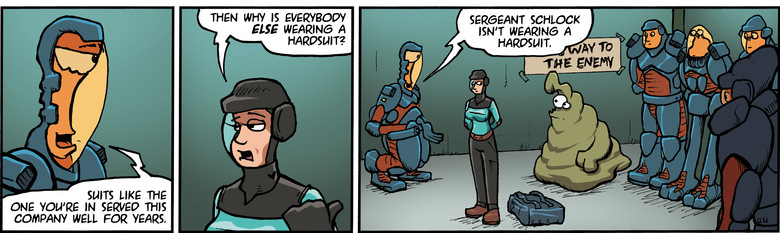 EBBY: Sergeant Schlock isn't wearing a hardsuit.