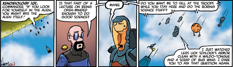 EBBY: I just watched Legs lick Schlock's armor clean with a waldo-tongue and a scrap of bug-wing. I dare you to ask that question again.