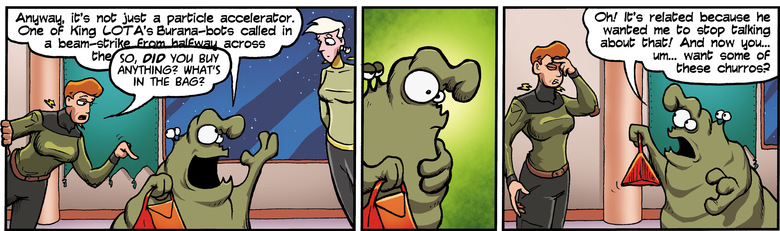 SCHLOCK: Oh! It's related because he wanted me to stop talking about that! And now you... um... want some of these churros?