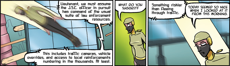 CHESTER: *on comm* Lieutenant, we must assume the J.S.C. officer in pursuit has command of the usual suite of law enforcement resources.